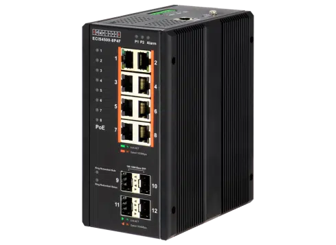 With the Industrial Switch Family ECIS4500 from the manufacturer Edgecore Networks, Gigabit switches with different numbers of ports and with or without PoE (Power over Ethernet) are available. In addition to the extensive L2 functions, static routing is also supported. In addition to industrial use, the ECIS4500 can also be used in the vicinity of railways (support for the EN50121-3/-4).